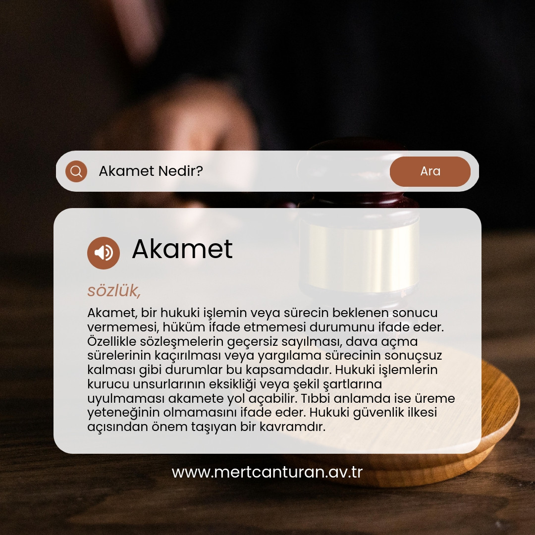 Akamet, genellikle planlanan işlerin başarısız olması, çabaların boşa gitmesi veya umutların sonuçsuz kalması gibi durumlarda kullanılır. Özellikle ticari, sosyal veya kişisel alanlarda karşılaşılan bir durumdur.