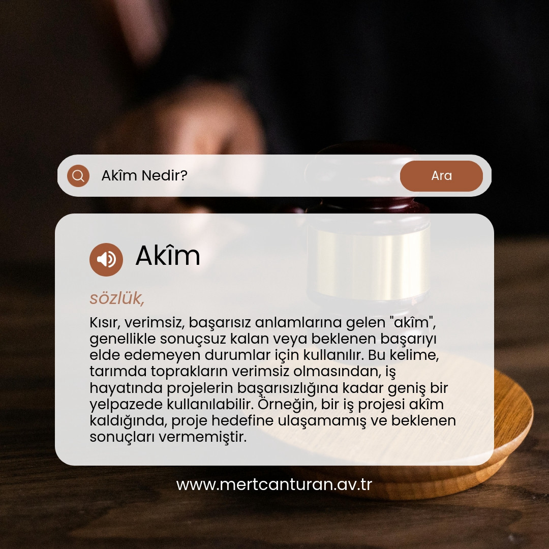 Akîm, kısır, verimsiz veya başarısız anlamına gelir. Bu terim, özellikle bir durumun veya sürecin beklenen sonucu vermemesi, istenilen verimliliğe ulaşamaması anlamında kullanılır. Tarımda ürün vermeyen topraklar, iş dünyasında istenilen başarıyı elde edemeyen projeler veya bireysel başarısızlıklar “akîm” olarak nitelendirilebilir.