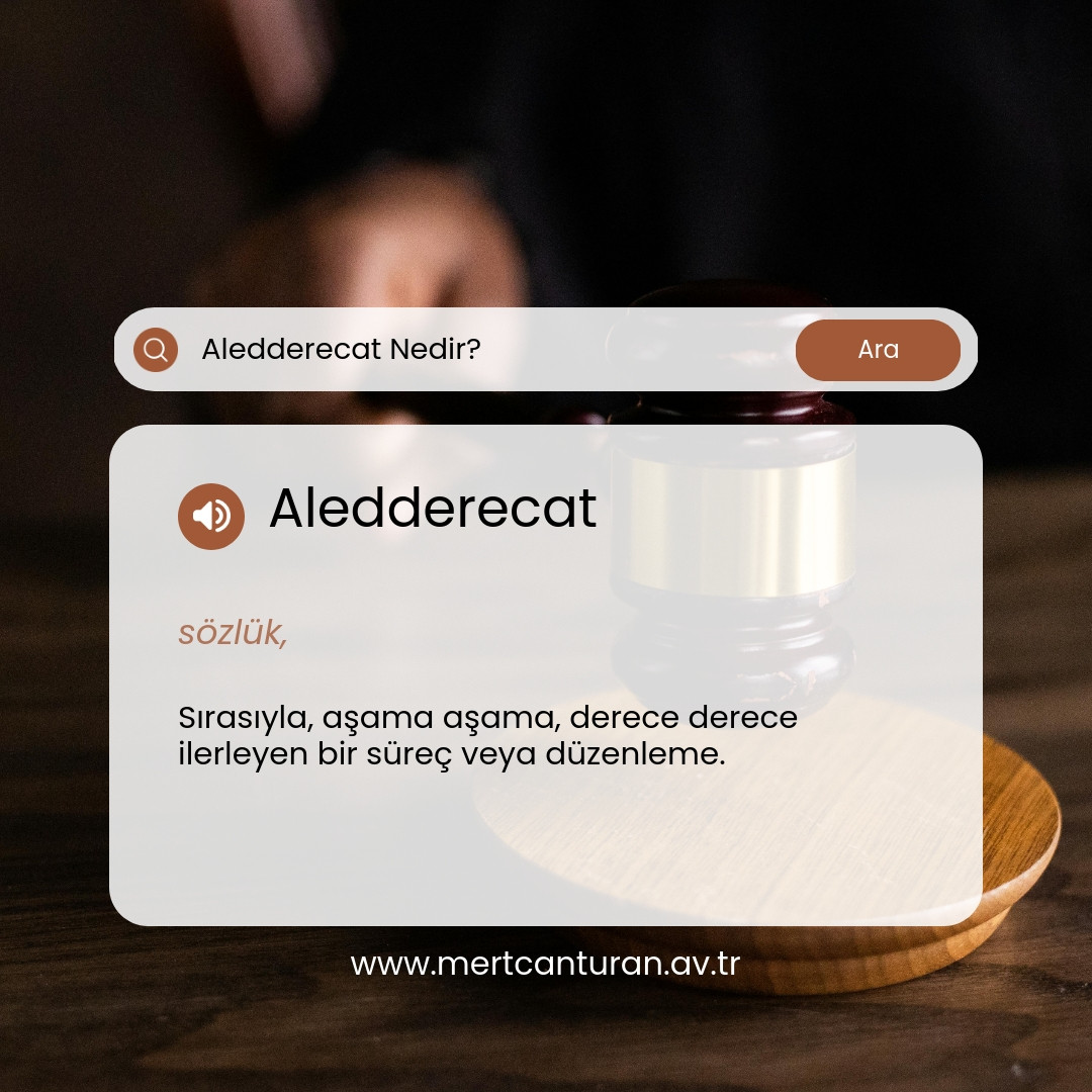 Aledderecat, sırasıyla, aşama aşama, derece derece ilerleyen bir süreç veya düzenlemeyi ifade eder. Bu türdeki süreçler, belirli bir düzen içerisinde adım adım ilerlemeyi gerektirir ve her bir aşama, bir öncekine bağlı olarak gelişir. Aşamalar arasında genellikle mantıksal bir bağlantı bulunur ve bu bağlantı, sürecin veya düzenlemenin sorunsuz bir şekilde ilerlemesini sağlar.
