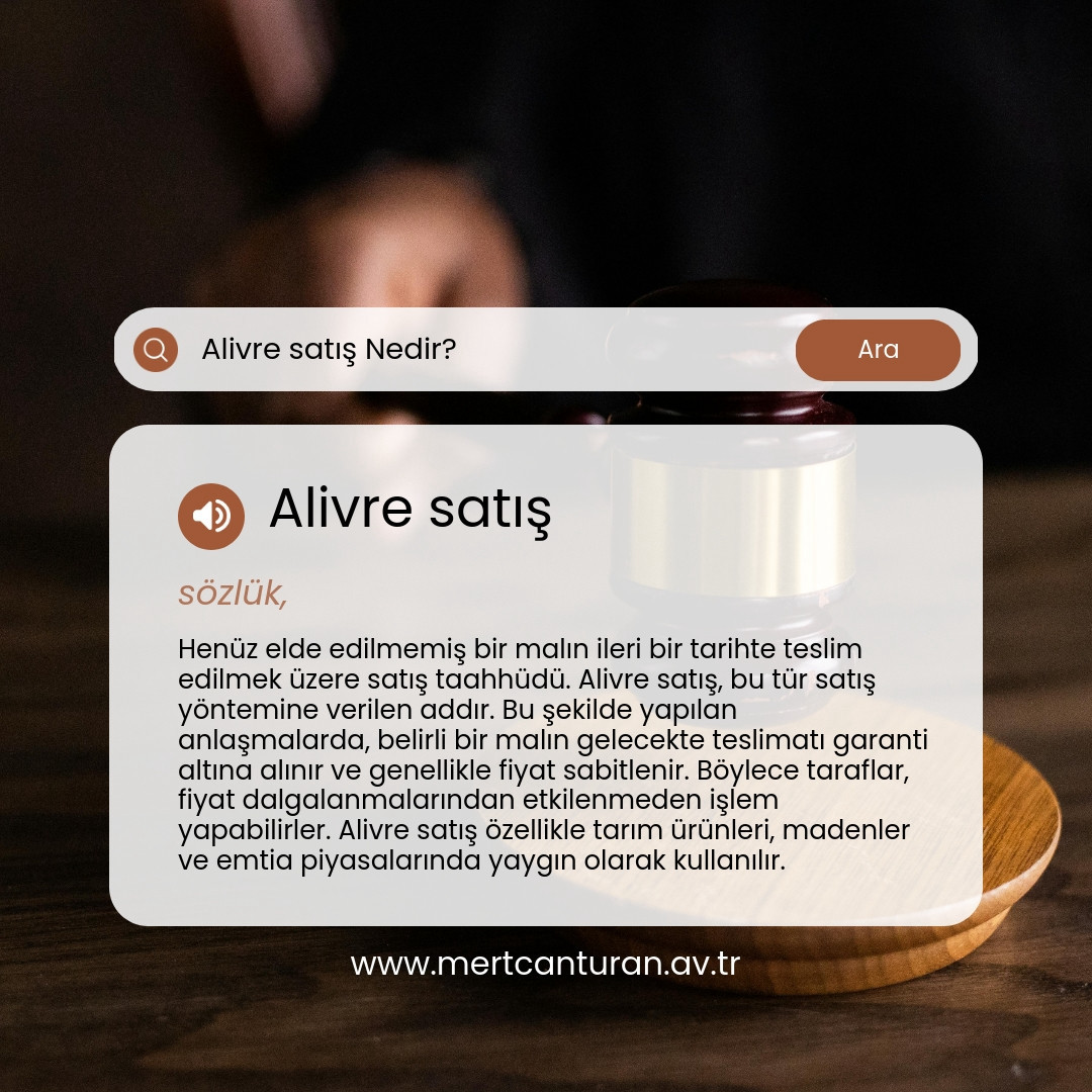 Bu tür satışlar, vadeli işlem ve türev piyasalarında sıkça karşılaşılan bir uygulamadır. Alivre satış işlemlerinin hukuki boyutu da oldukça önemlidir. Taraflar arasında yapılan sözleşmeler, malın kalitesi, miktarı, teslim tarihi ve fiyat gibi detayları net bir şekilde belirlemelidir. Aksi halde, taraflar arasında anlaşmazlıkların çıkması kaçınılmaz olabilir.
