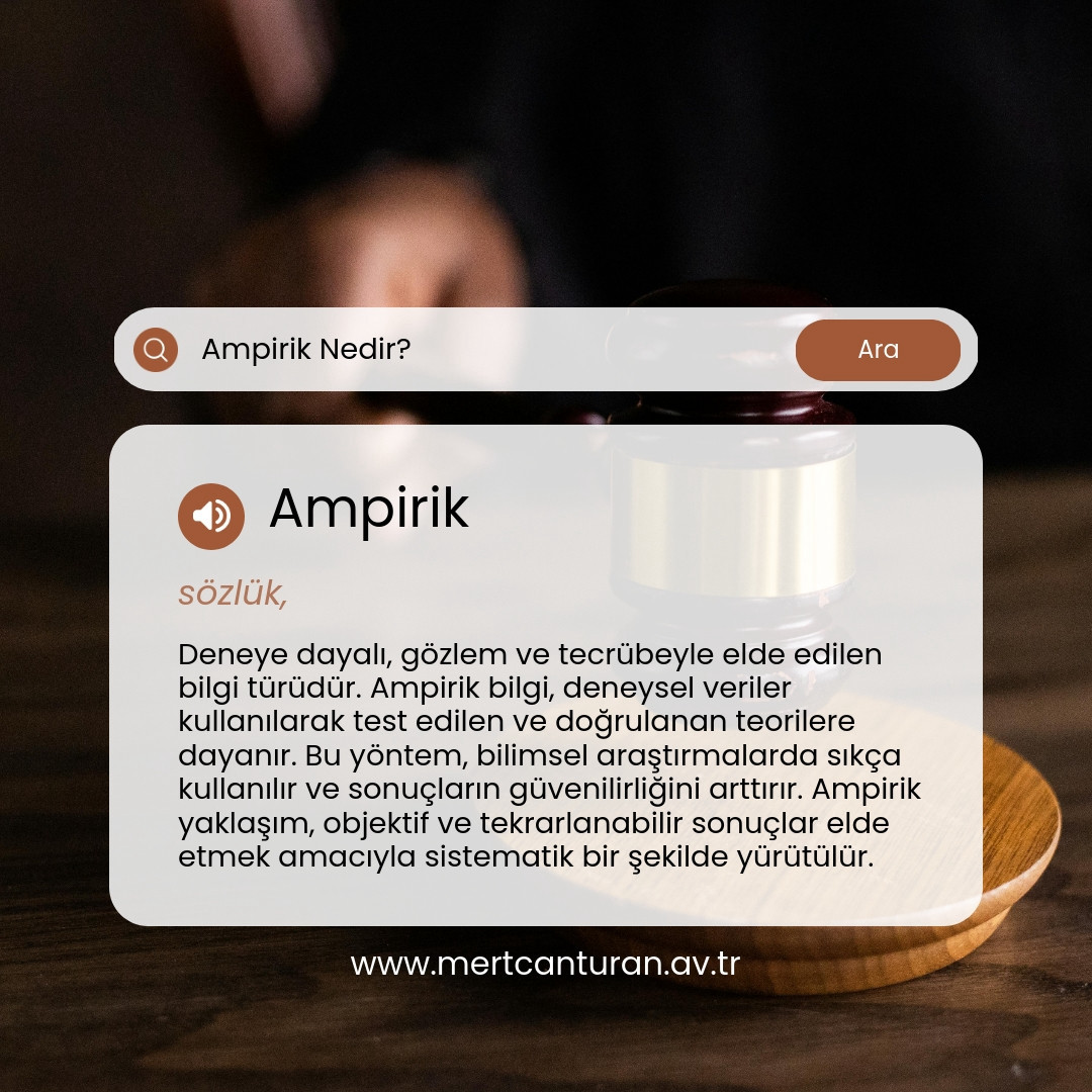 Ampirik, deneye dayalı olarak elde edilen verilerle veya gözlemlerle desteklenen bilgi veya yaklaşımı ifade eder. Bu tür bilgi ve yöntemler, teorik veya varsayımsal bilgilerden ziyade doğrudan deneyimlere, gözlemlere ve deneysel sonuçlara dayanır. Ampirik yaklaşımlar, bilimsel araştırmalarda sıkça kullanılır ve genellikle somut kanıtlara dayalıdır, bu da onların güvenilirliğini artırır.