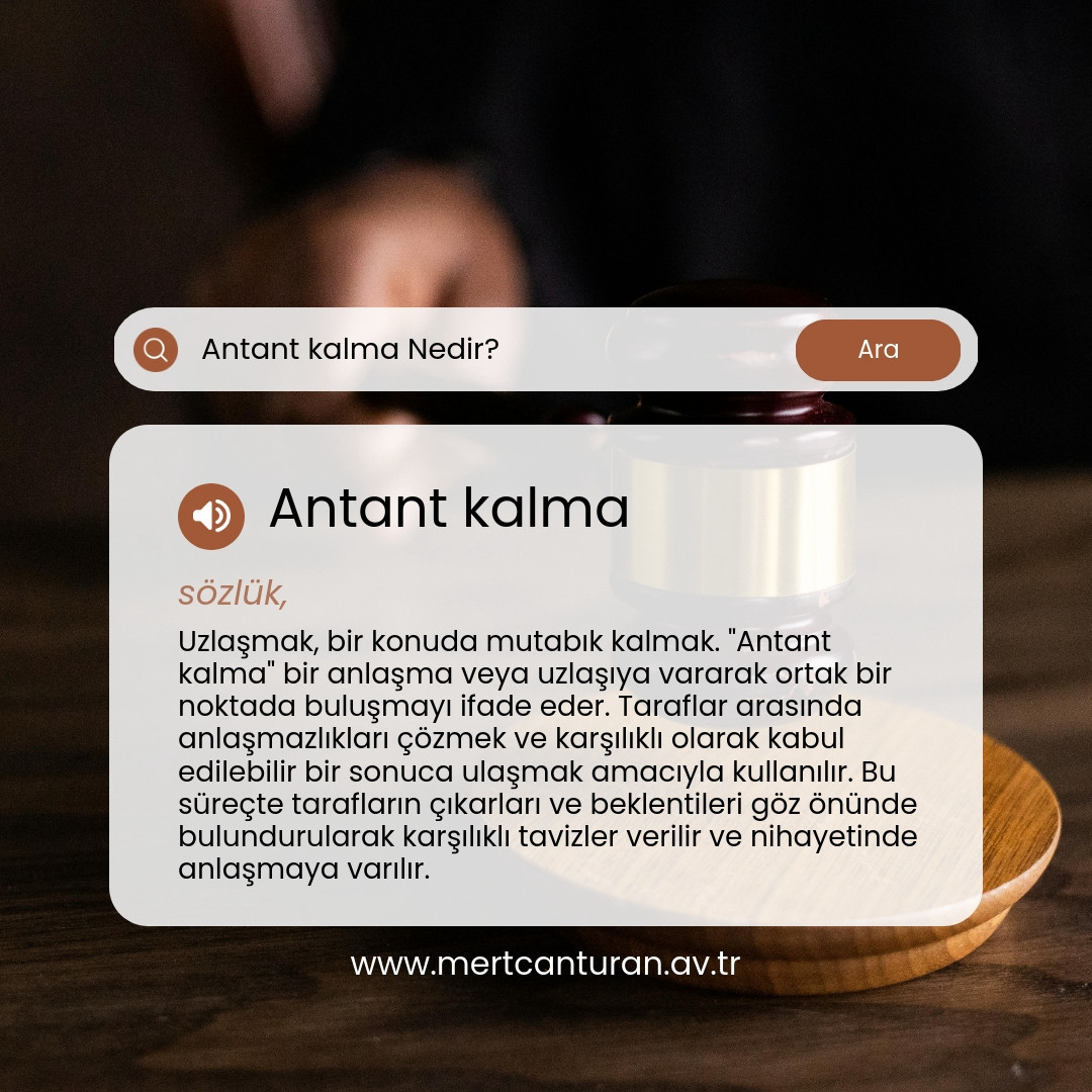 Antant kalma, uzlaşmak veya bir konuda mutabık kalmak anlamında kullanılan bir terimdir. Tarafların birbirlerinin görüşlerini dikkate alarak ortak bir noktada buluşmalarını ifade eder. Bir anlaşmanın sağlanması süreci, genellikle çeşitli müzakereler ve karşılıklı fedakarlıklarla gerçekleşir. Antant kalma durumunda taraflar, farklılıklarını minimize ederek ortak bir zeminde birleşirler.