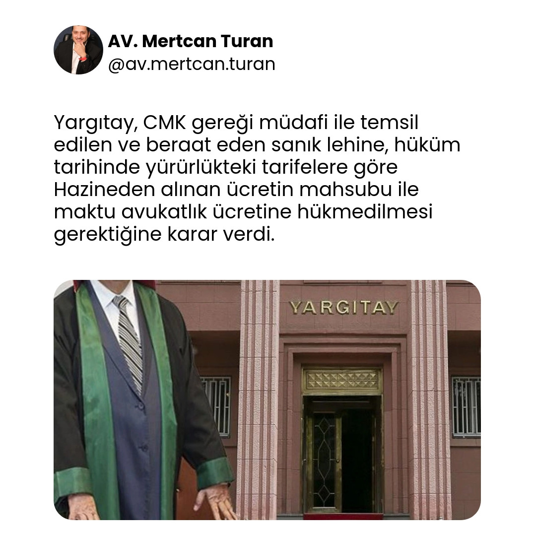 Bu hükümler uyarınca, beraat eden ve CMK gereğince müdafi ile temsil edilen sanık lehine maktu avukatlık ücretine hükmedilmesi gerektiği vurgulandı. Kovuşturma aşamasında Hazine’den alınan ücretin mahsup edilmesi ile sürecin tamamlanacağı belirtildi.