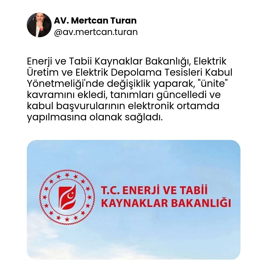 Enerji ve Tabii Kaynaklar Bakanlığı, Elektrik Üretim ve Elektrik Depolama Tesisleri Kabul Yönetmeliği‘nde önemli değişiklikler yaptı. 19 Şubat 2020 tarihli ve 31044 sayılı Resmî Gazete’de yayımlanan değişiklikler, elektrik üretim ve depolama tesislerinin kabul süreçlerini yeniden düzenliyor.