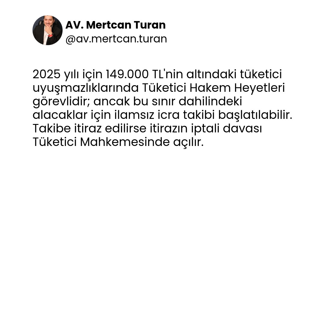 - İtiraz halinde itirazın iptali davası Tüketici Mahkemesinde açılmalıdır.