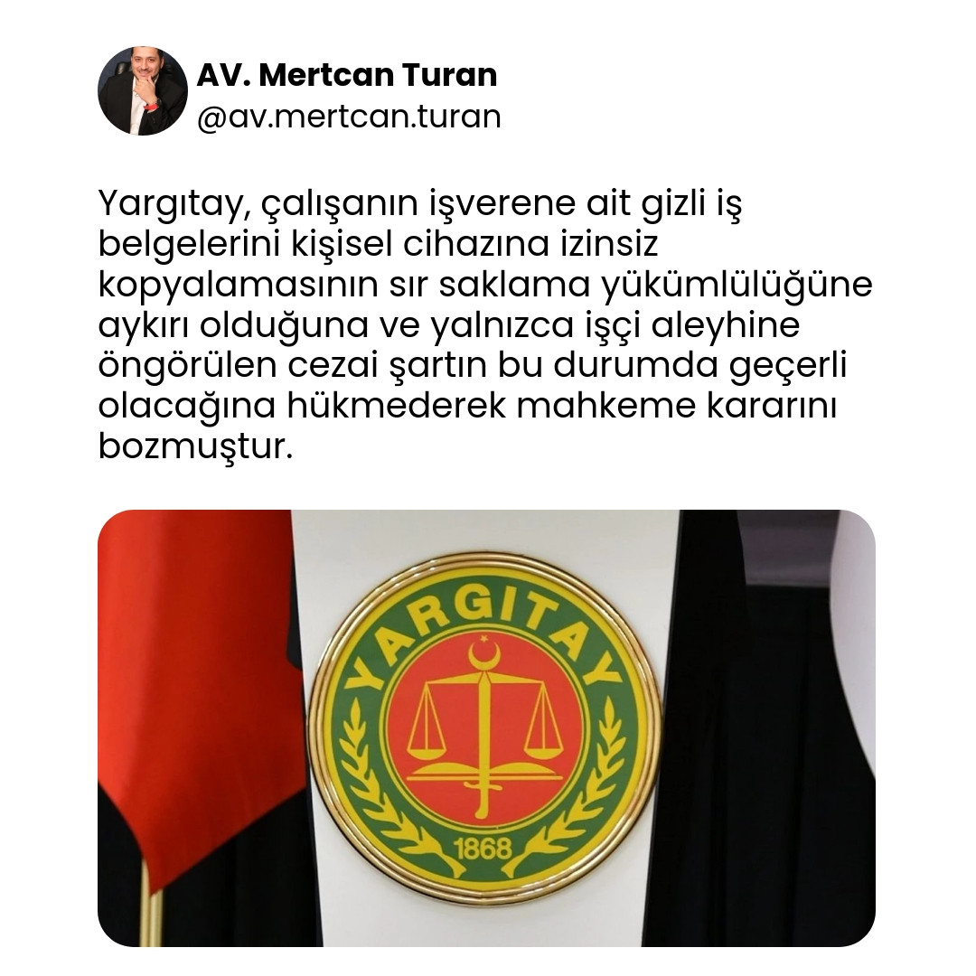 - İşçinin gizlilik taahhüdünü ihlal etmesini cezai şartın koşul sayılması gerektiğini hükme bağladı.